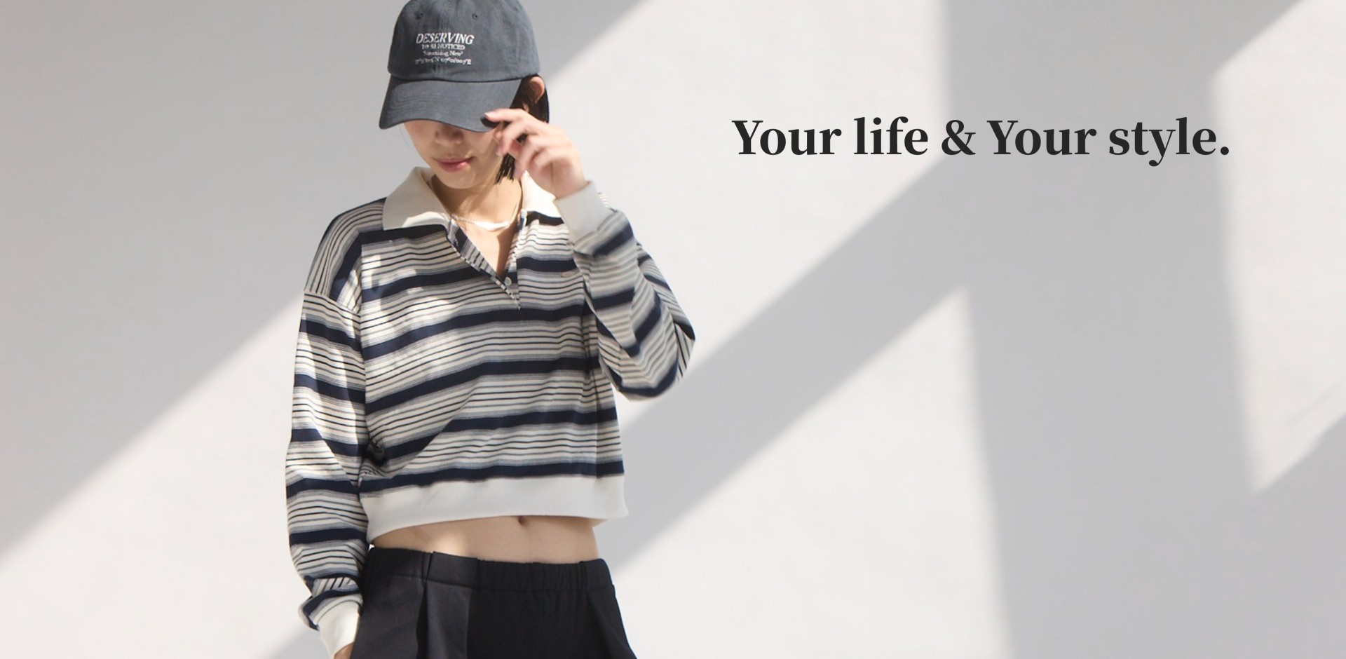 橫條短版polo長袖上衣