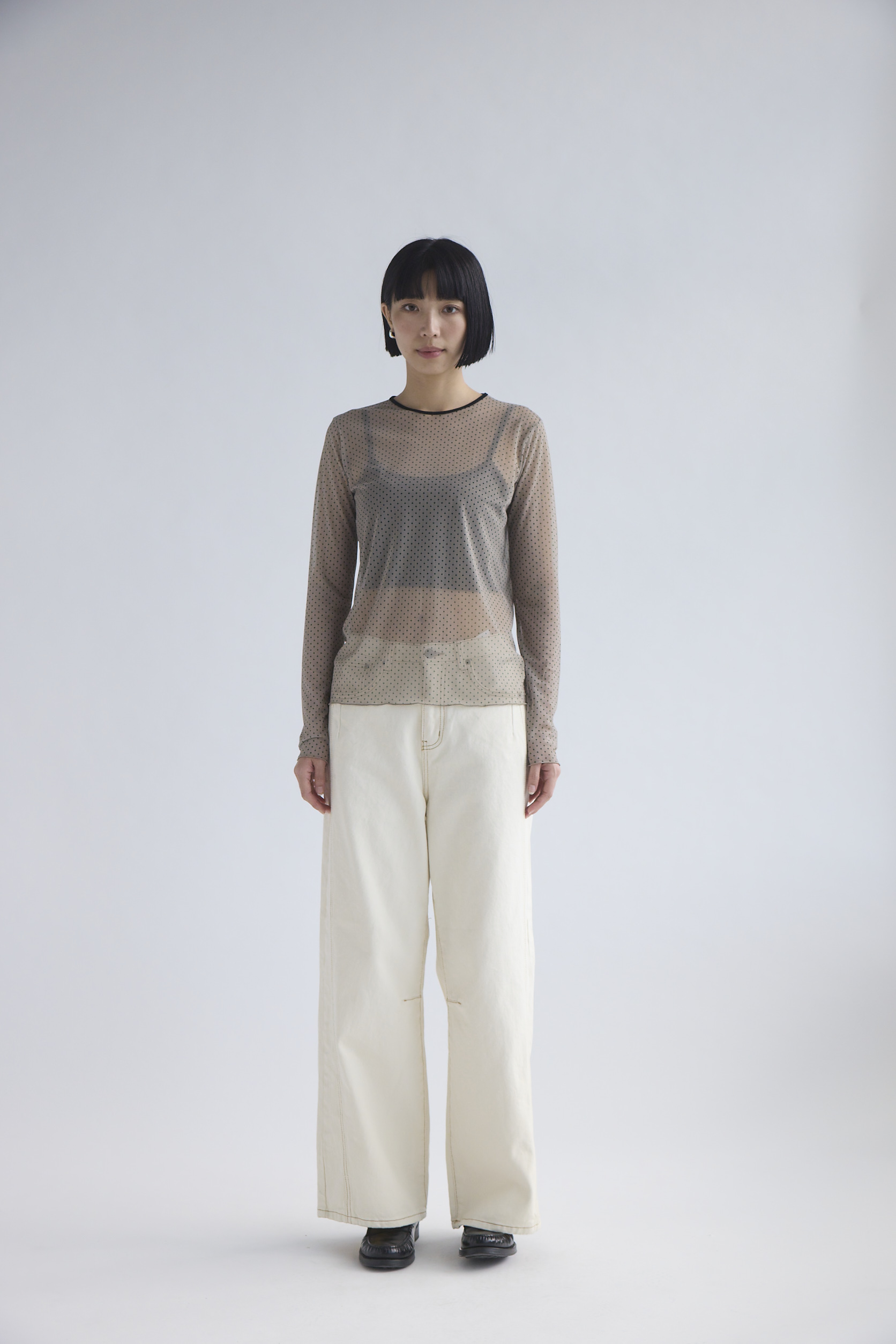 點點透膚打底上衣/黑