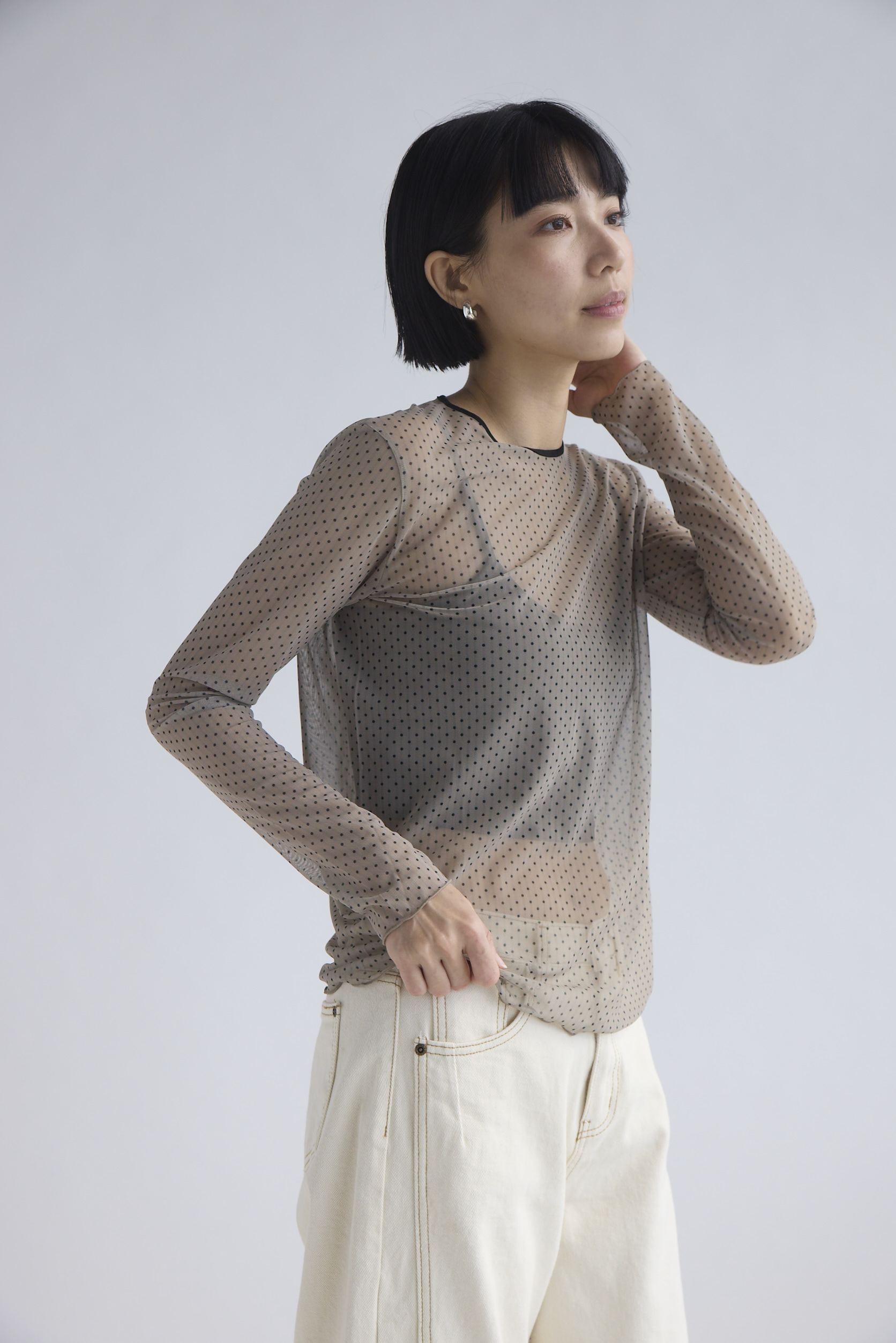 點點透膚打底上衣/駝