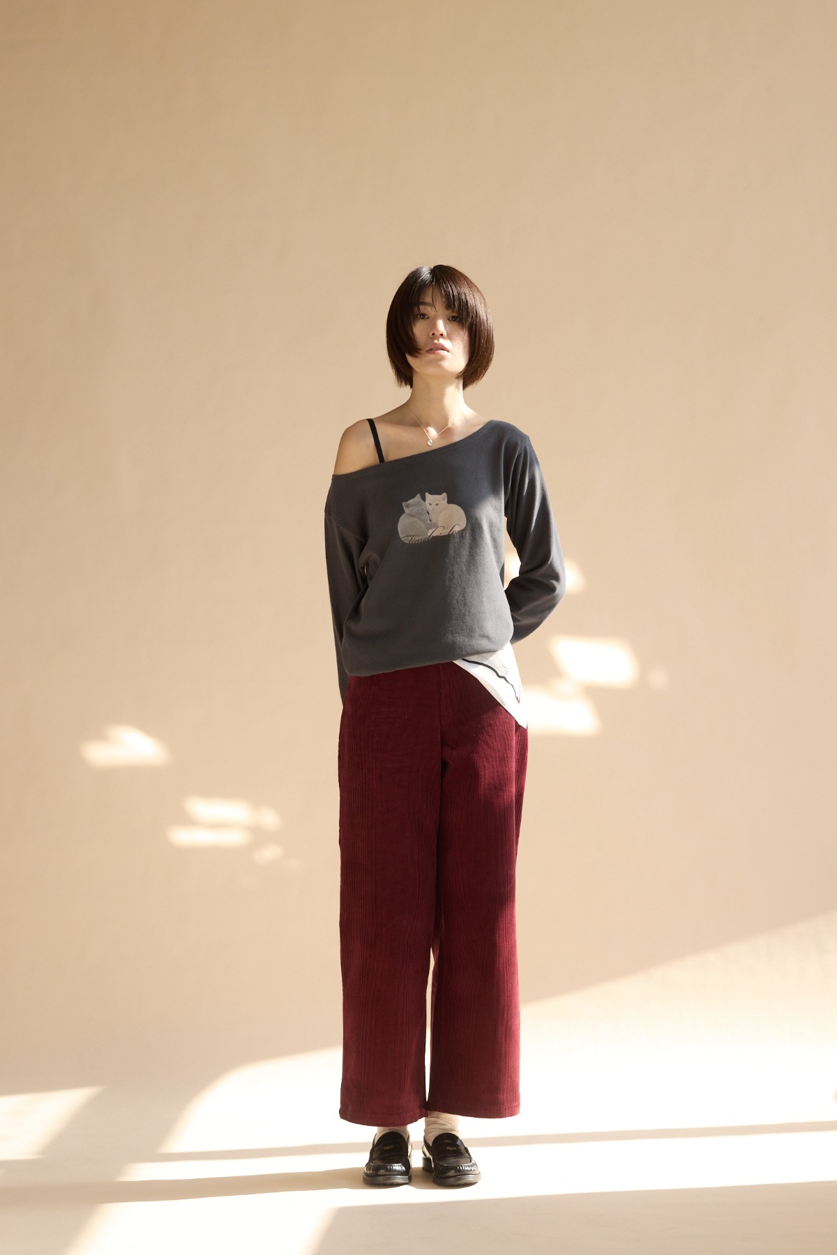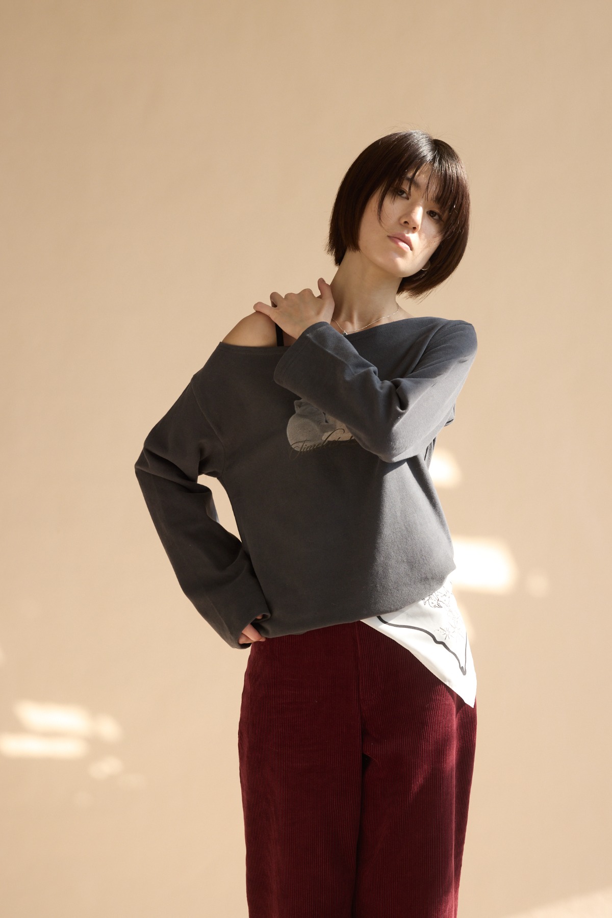 商品尺寸 落肩設計/胸寬:59/袖長:73/衣長:58 (單位/公分) *本尺寸皆為水平丈量,會因布料彈測量起訖點等因素,與實際商品尺寸略有誤差,誤差尺寸±3公分。