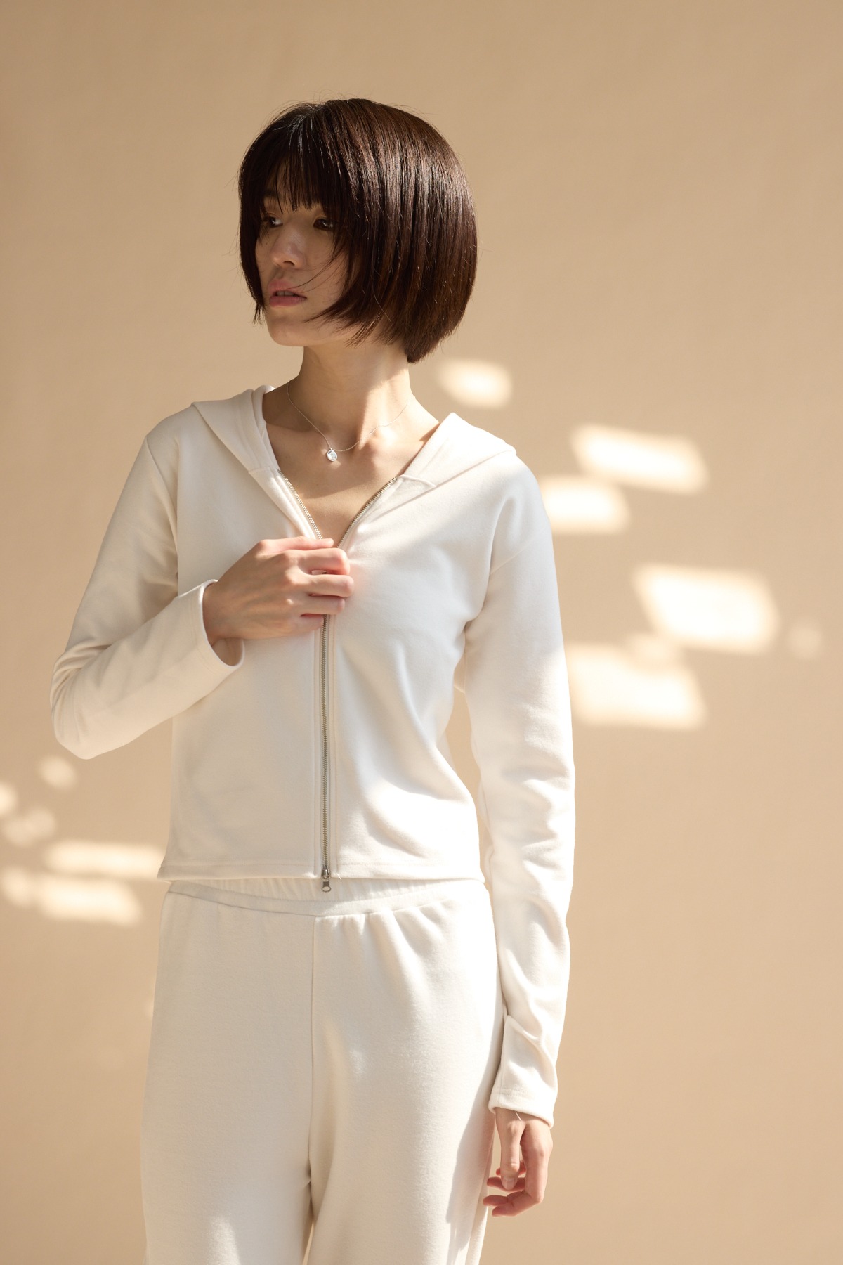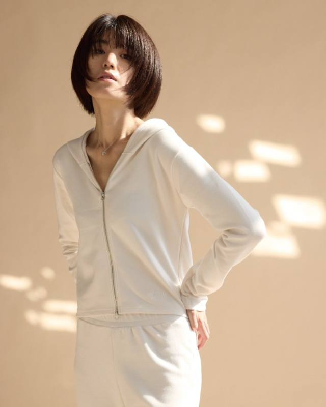 舒服棉連帽合身外套/白