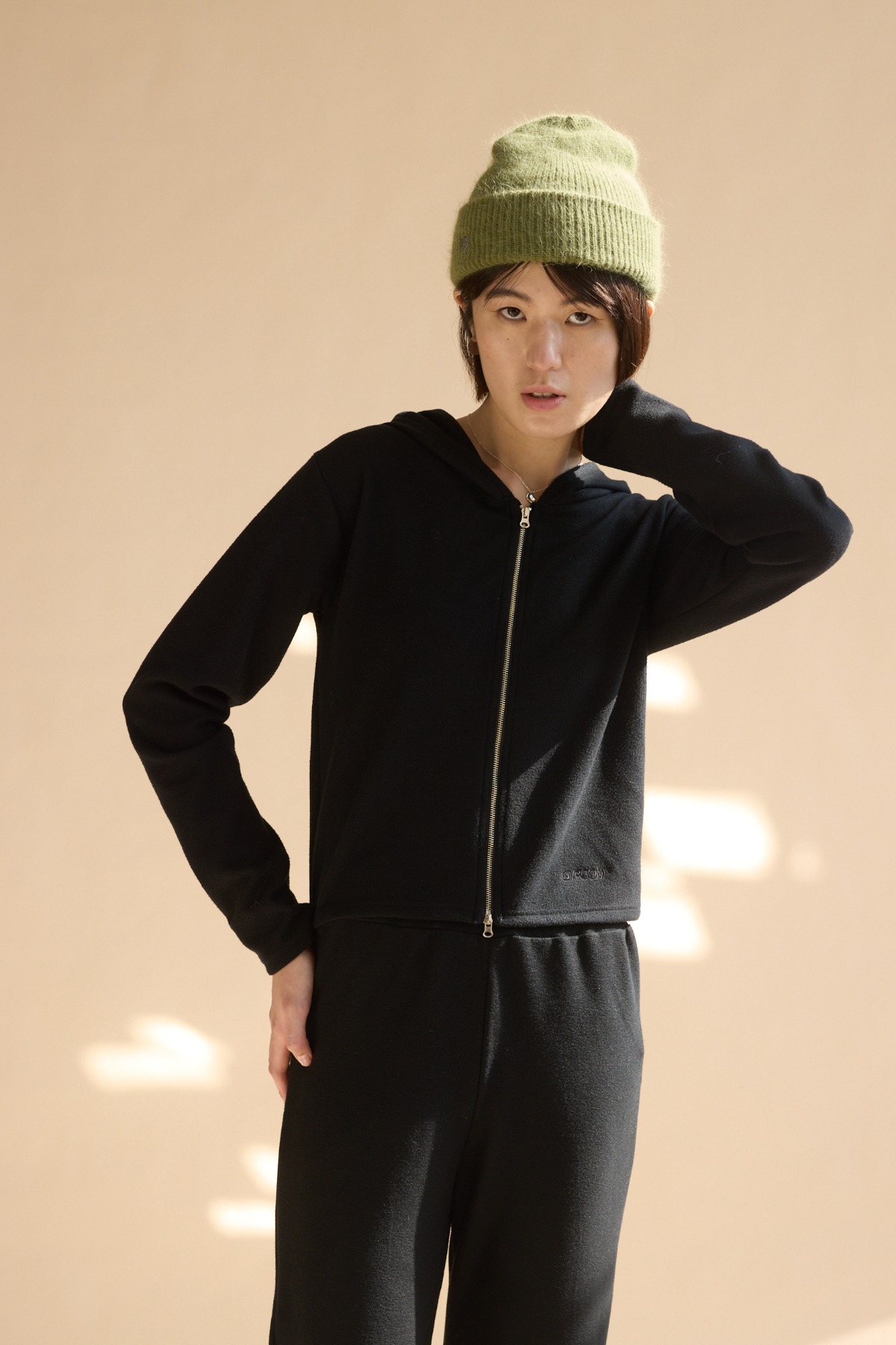 舒服棉連帽合身外套/黑