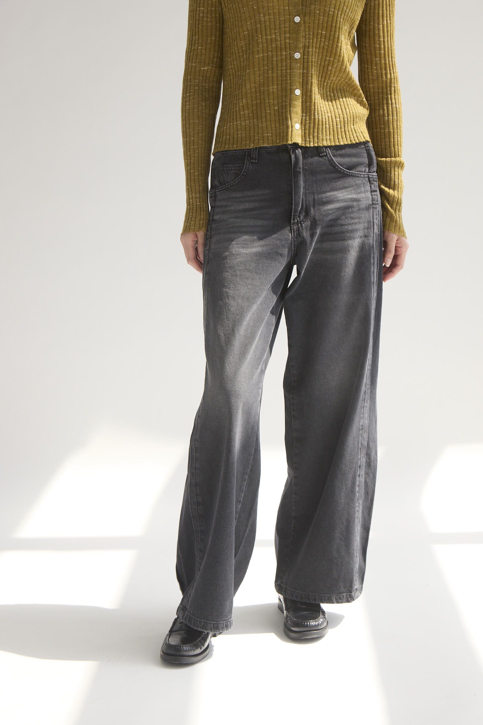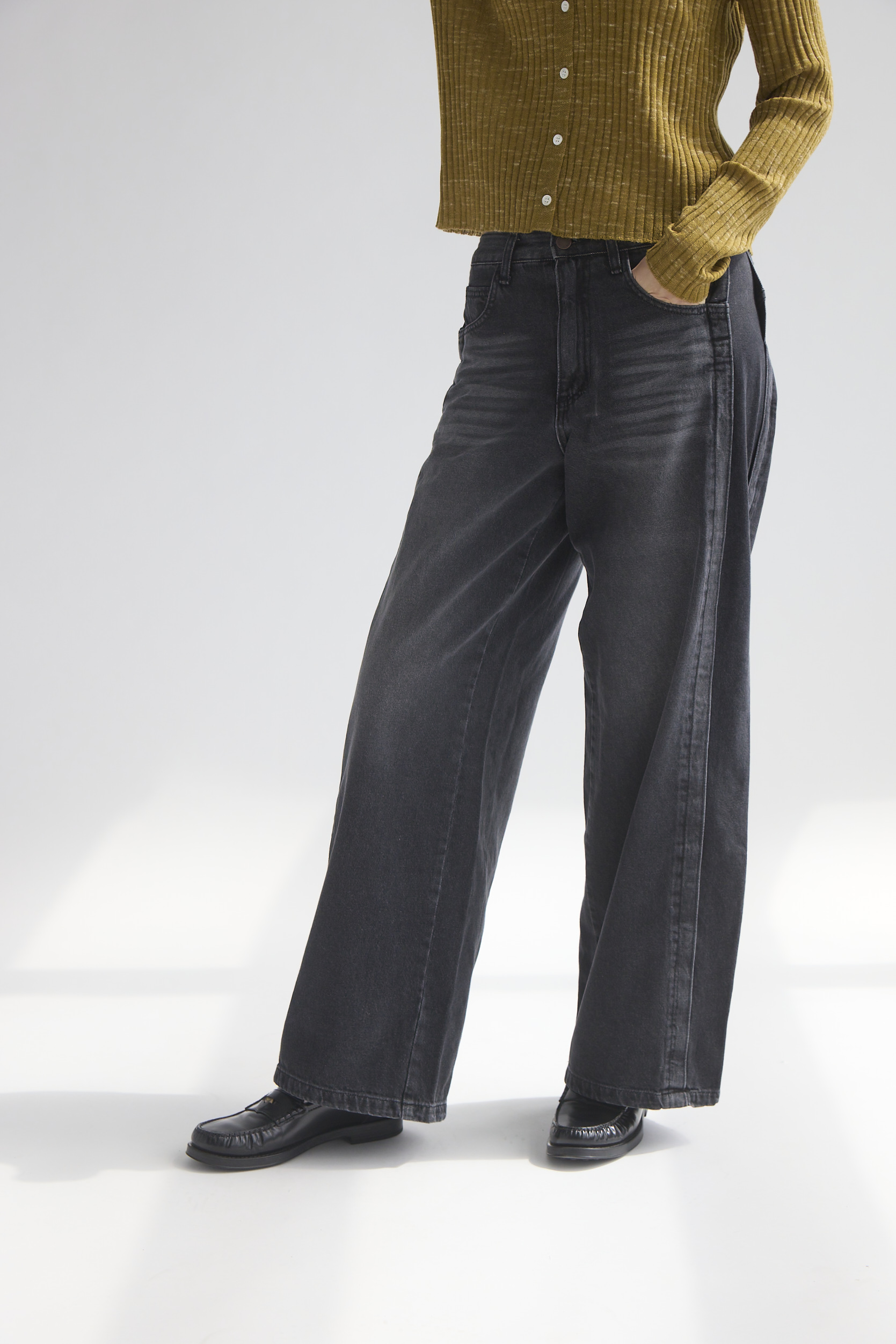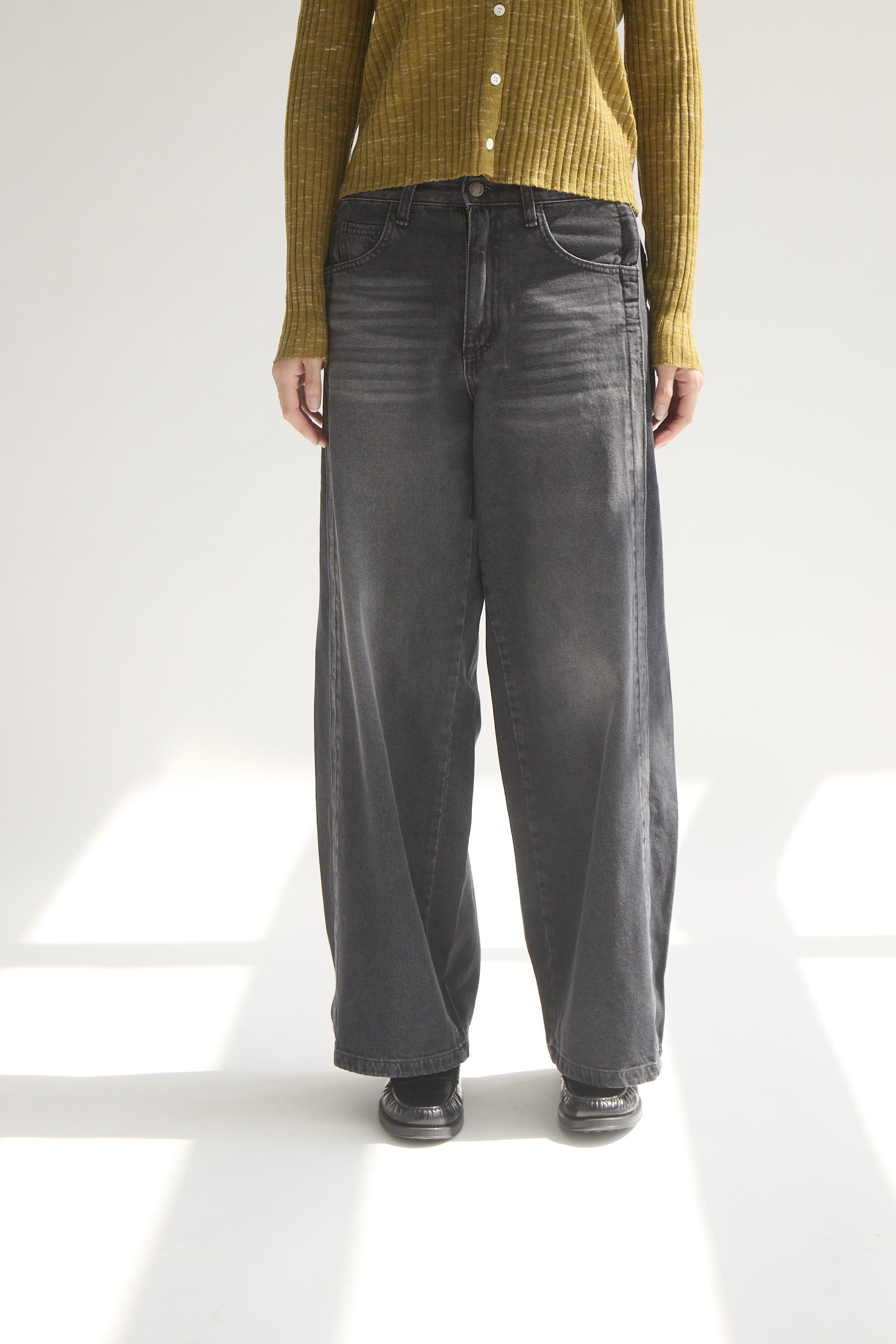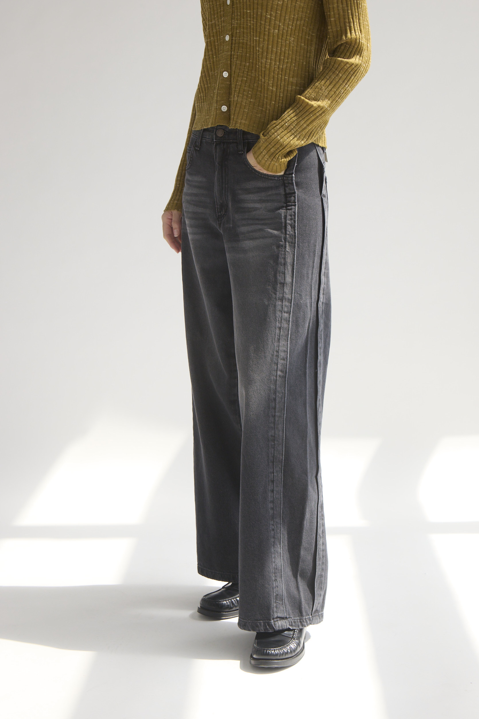 側邊拼接特殊刷色寬版牛仔褲