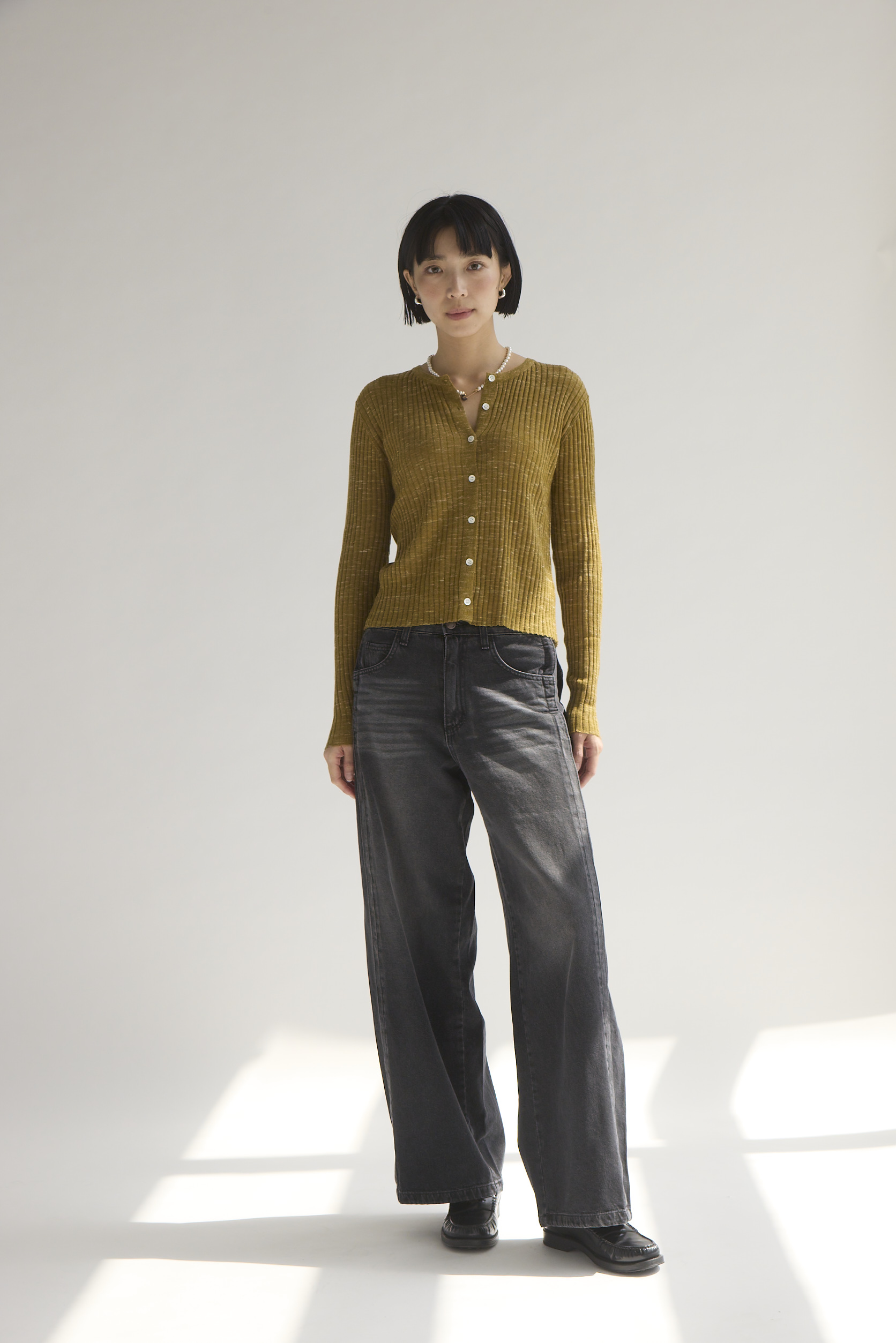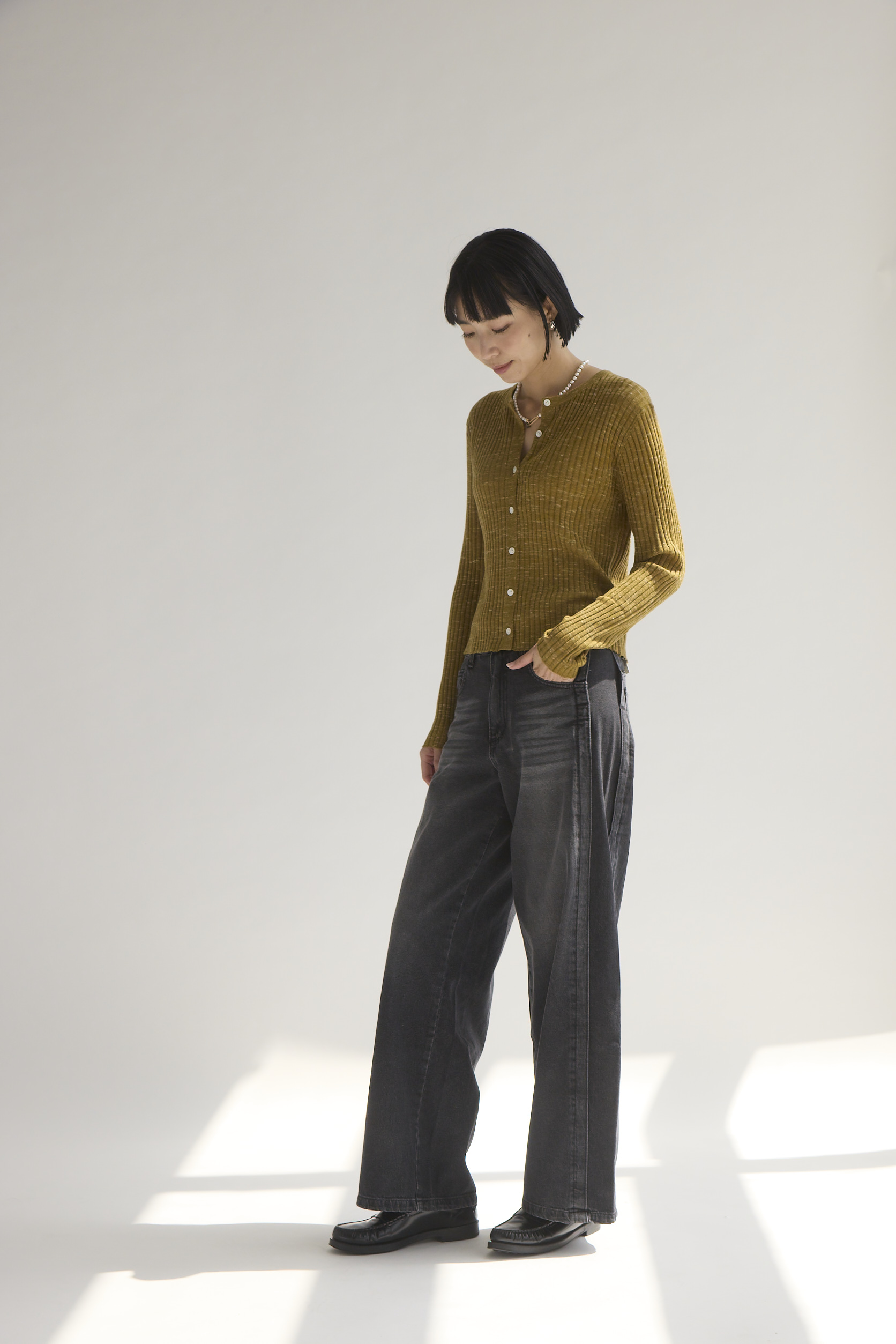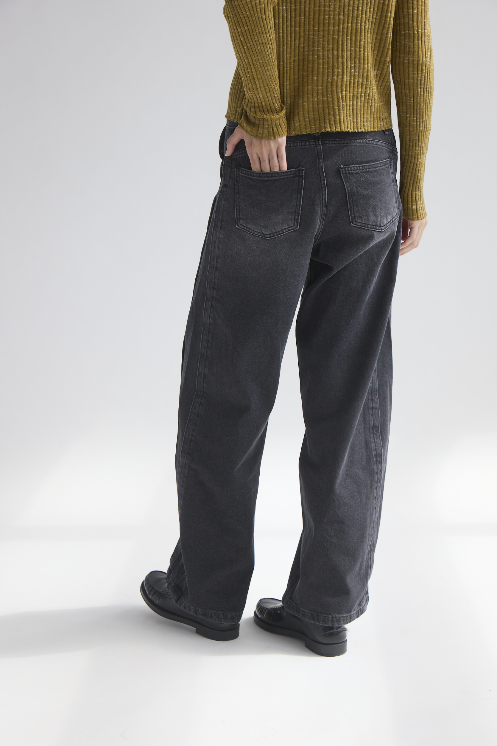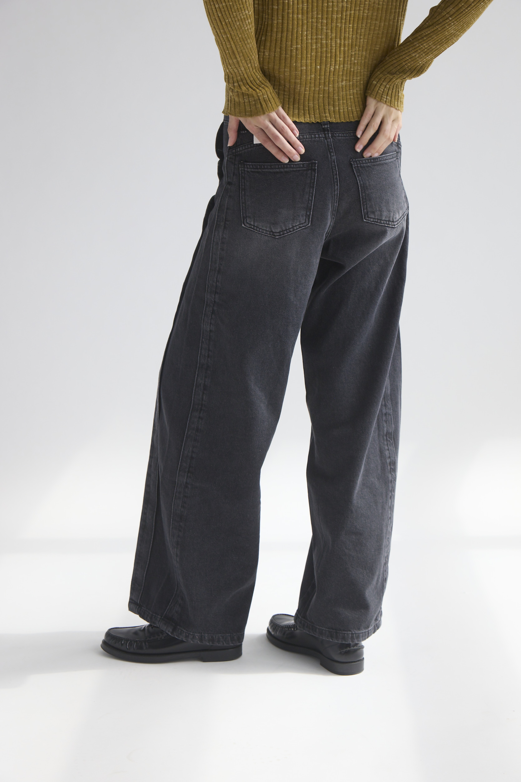 側邊拼接特殊刷色寬版牛仔褲